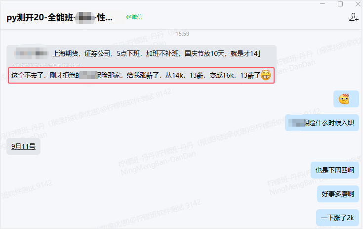 跳槽成功,上海16k*13薪 2025-09-24 17:39 0 0 系统学习全能班夯实技能,瞄准跳槽突破 老师一对一精准赋能,凭硬核技能实现职场进阶 最终拿下上海16k*13薪,技能变现路径清晰可见 评论:0 点赞:0 阅读: +1