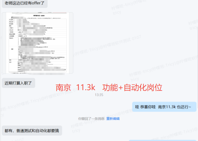 南京11.3k offer,靠学习告别求职困境 2025-11-28 17:57 0 0 待业半年求职碰壁,深感竞争力不足 报班系统学习,在老师专业指导下夯实技能 成功跳槽拿下南京11.3k offer,打破职场困局 投资自己,是提升竞争力的最佳路径 评论:0 点赞:0 阅读: +1
