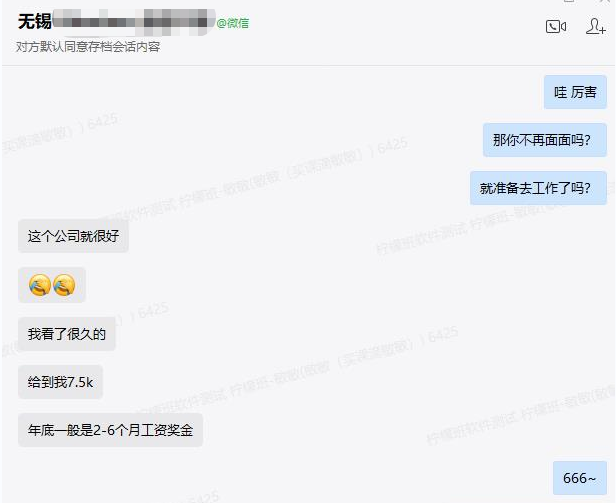 无锡7.5k,零基础转行入职心仪公司 2026-01-30 17:39 0 0 零基础跨行学习软测,果断报班开启系统学习 紧跟课程夯实技术、实战练手,一路稳步提升 成功拿下无锡7.5k offer,入职心仪已久的公司 从入门到入职,这条路,有方法就没有距离 评论:0 点赞:0 阅读: +1